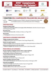 Il Campionato italiano del salame 2025, dopo le semifinali dell’anno scorso che hanno selezionato quasi 60 salami di 13 diverse regioni, è giunto al traguardo con l’assegnazione del podio e di premi di categoria.