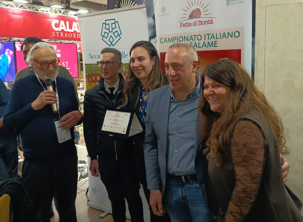 Tornando alla nostra famiglia trionfatrice, è tre volte trionfatrice perché ha vinto anche il premio speciale riservato alla ‘Nduja ed è stata insignita dall’Accademia con l’Oscar alla carriera, logica conseguenza di anni di successi nel Campionato stesso con diversi premi speciali, non solo con la ‘Nduja e la Soppressata ma pure vincendo ripetutamente, con il Sangiorgese, il premio per il miglior salame con quinto quarto.