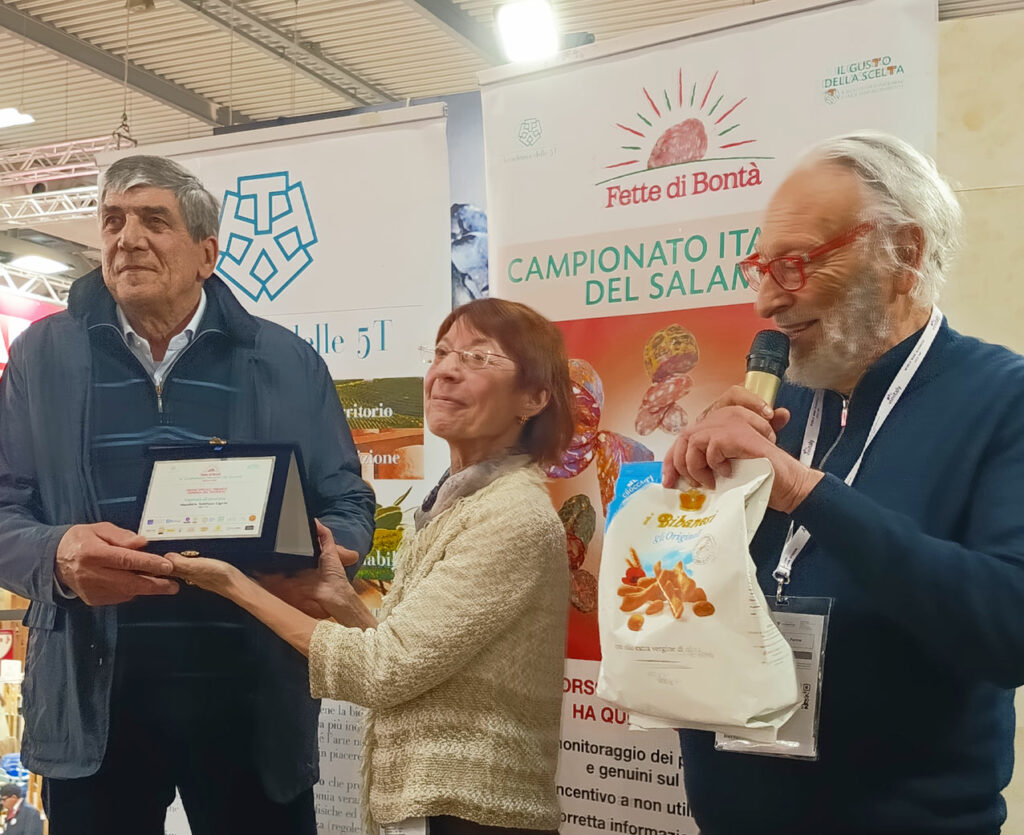 Così, giocando in casa perché nella sua Verona, lo troviamo per l’ennesima volta a ricevere il premio nell’area della Regione Calabria al Vinitaly. Una location giustificata dal fatto che negli ultimi anni la Calabria è la regione più premiata e con più finalisti nel Campionato Italiano del Salame, quest’anno ottenendo, con la famiglia Ioppolo di San Giorgio Morgeto (RC), addirittura il primo posto assoluto.