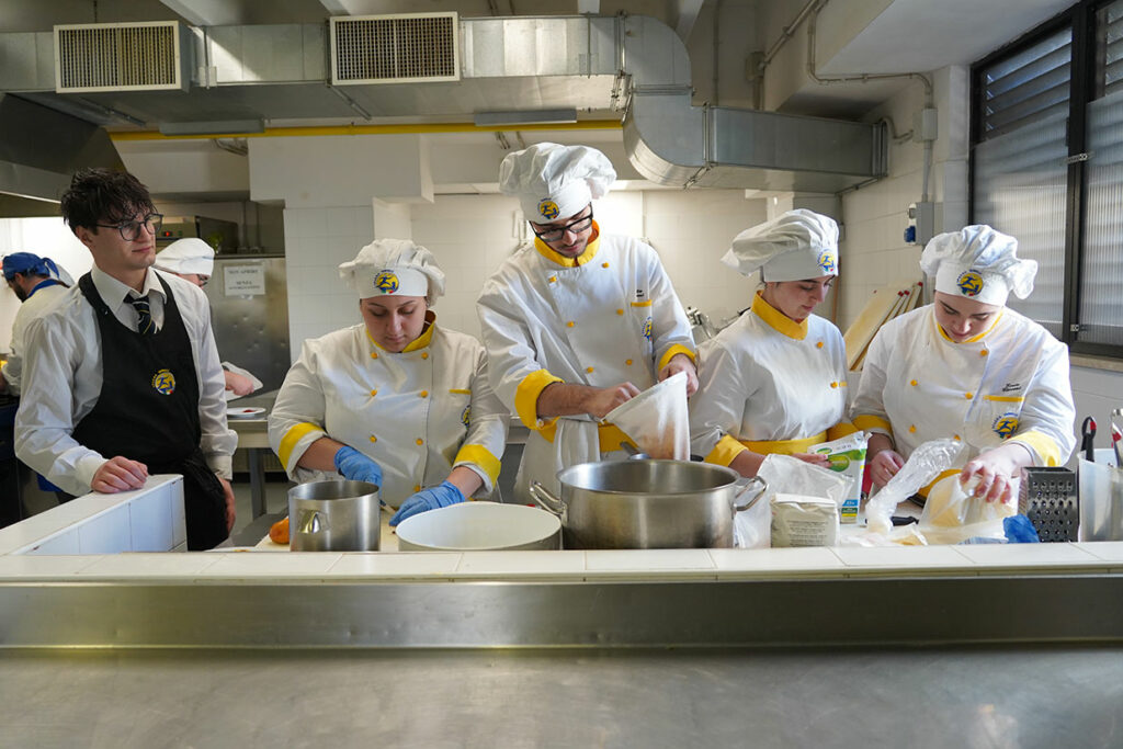 Ad accompagnarli, li docente di cucina e pasticceria Bruno Spaccia e l’assistente tecnico di laboratorio di cucina Andrea Ansovini.