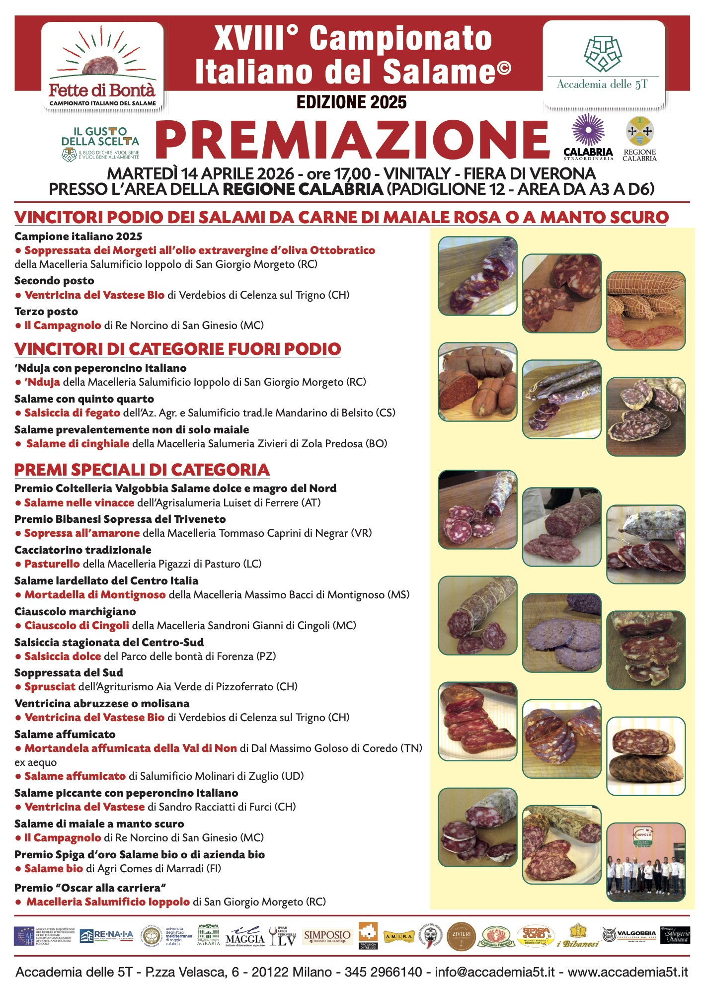 Premiazione del Campionato Italiano del Salame a Vinitaly Home » Eventi A5T » Premiazione del Campionato Italiano del Salame a Vinitaly Articoli collegati Calabria, Abruzzo e Marche sul podio del Campionato Italiano del Salame 2025 I finalisti del Campionato Italiano del Salame 2025 I candidati finalisti del concorso “Pane e salame ieri e oggi” 2025 Eccellenze da non perdere in ottobre a Roma: Simposio Trionfo del Gusto Da Lombardia, Calabria e Marche i campioni italiani del salame A Sasso Marconi per proclamare i campioni itaiani del salame